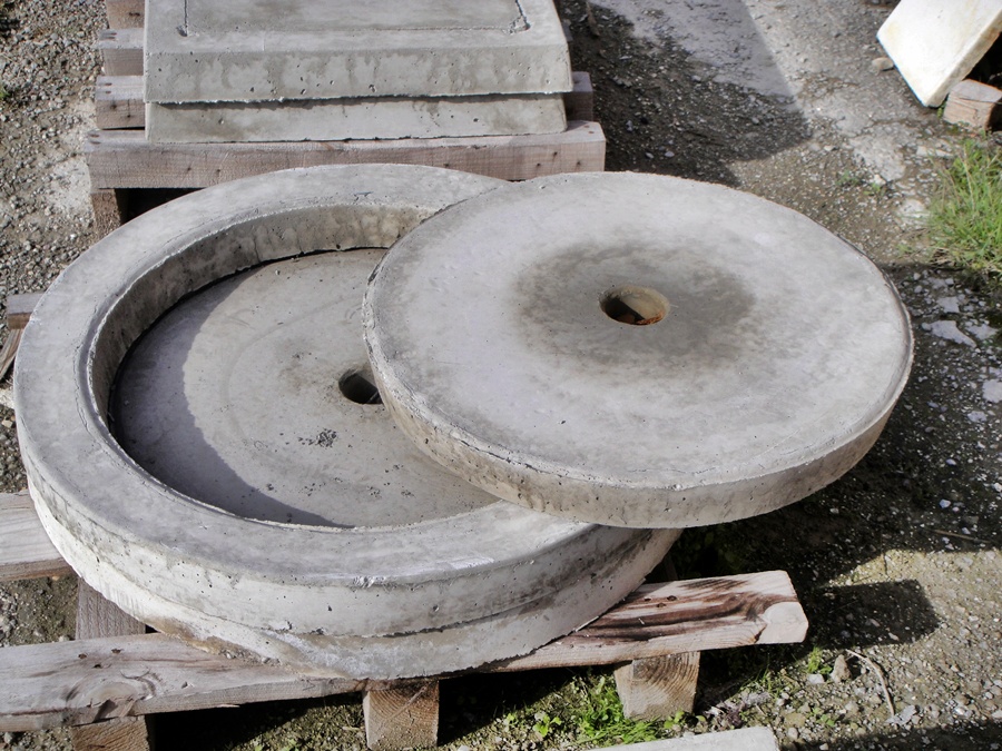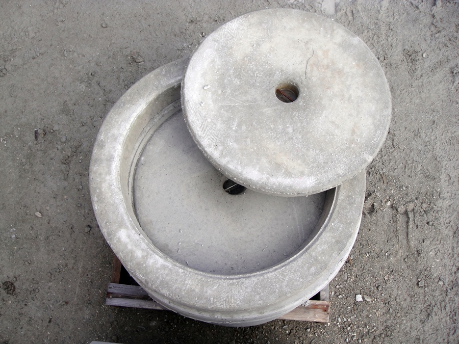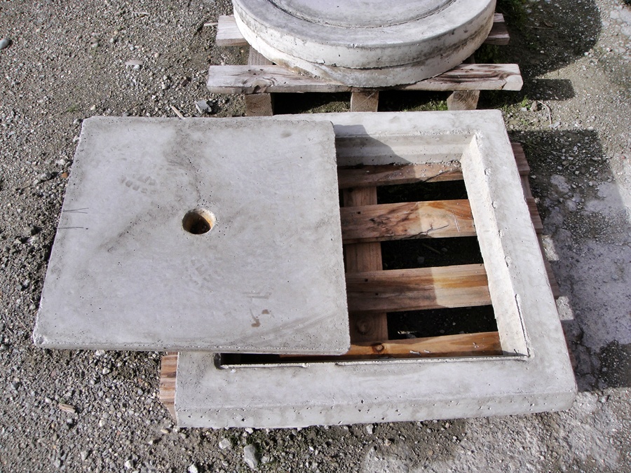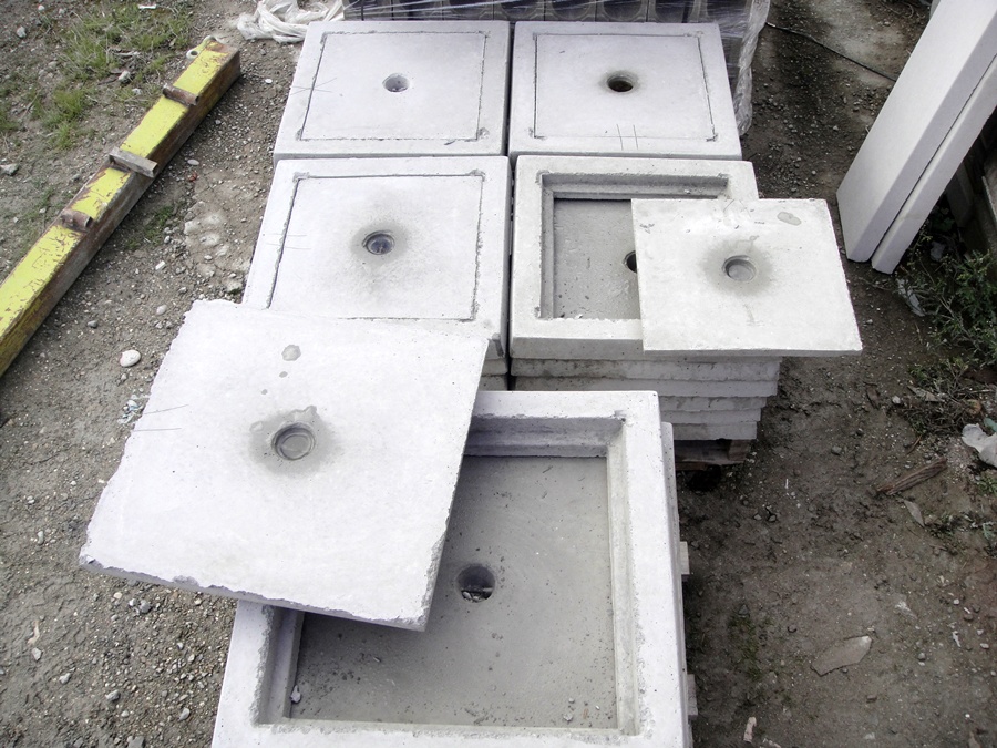 Tapas y marcos fabricados en hormgión ligeramente armada mediante varillas de acero.
